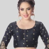 Black Brocade Round Neck 3/4 Sleeves Readymade Blouse