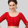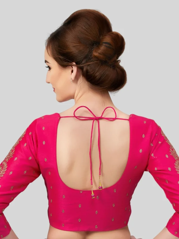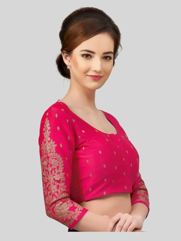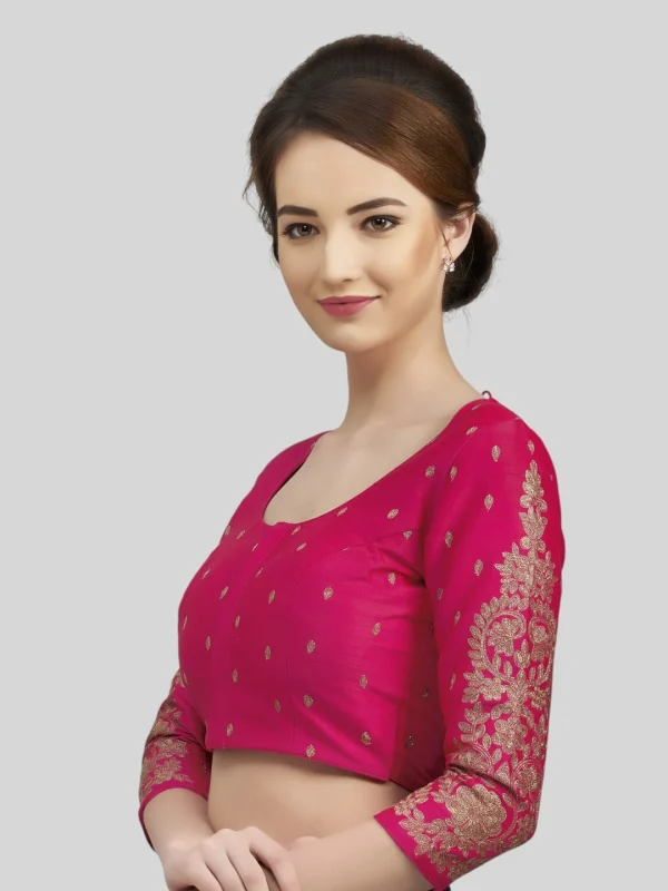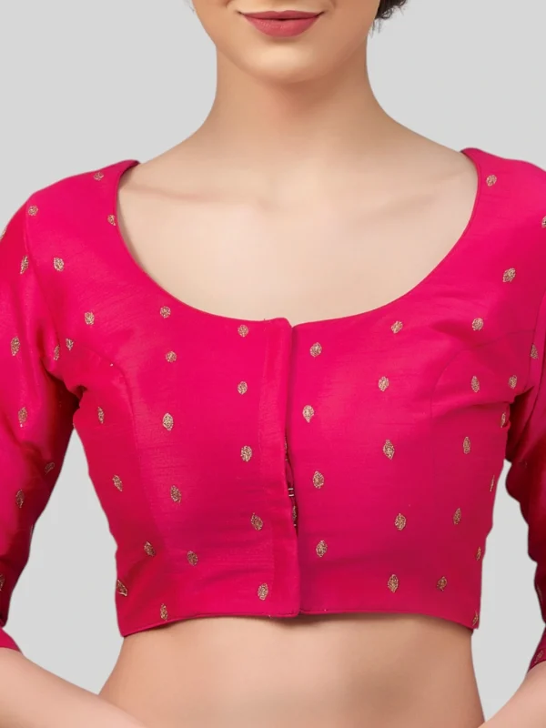 Pink Brocade Round Neck 3/4 Sleeves Readymade Blouse