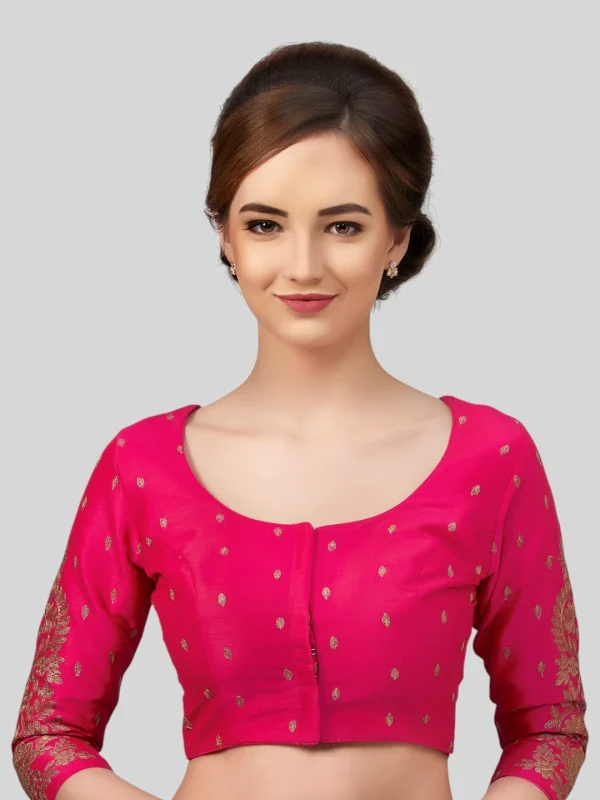 Pink Brocade Round Neck 3/4 Sleeves Readymade Blouse