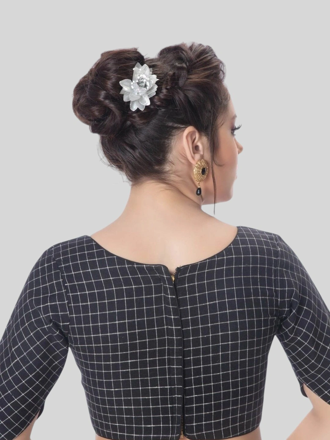 Black Cotton Round Neck Half Sleeves Readymade Blouse
