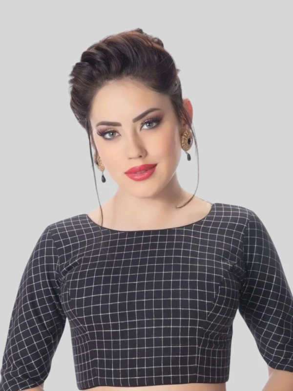 Black Cotton Round Neck Half Sleeves Readymade Blouse