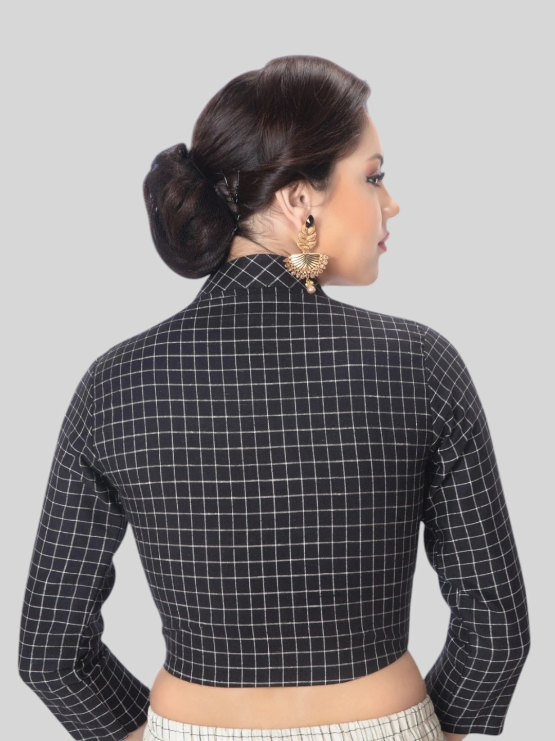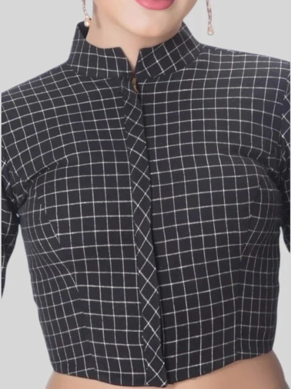 Black Cotton Collar Neck 3/4 Sleeves Readymade Blouse