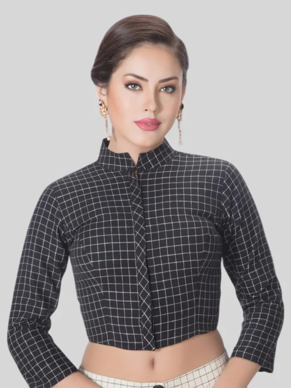 Black Cotton Collar Neck 3/4 Sleeves Readymade Blouse