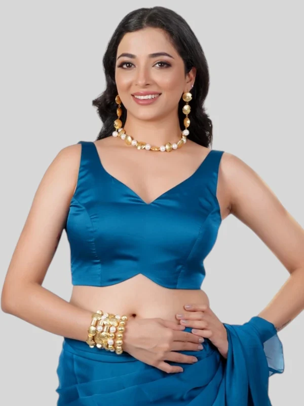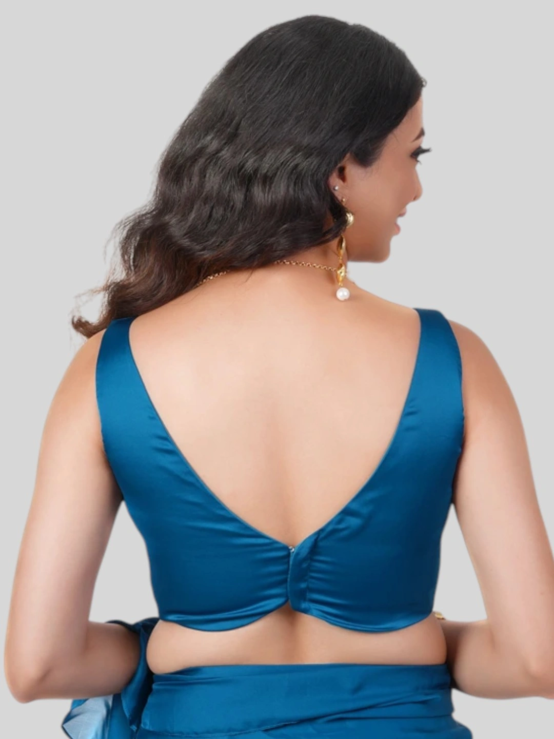 Blue Tissue Fabric Sleeveless Readymade Blouse