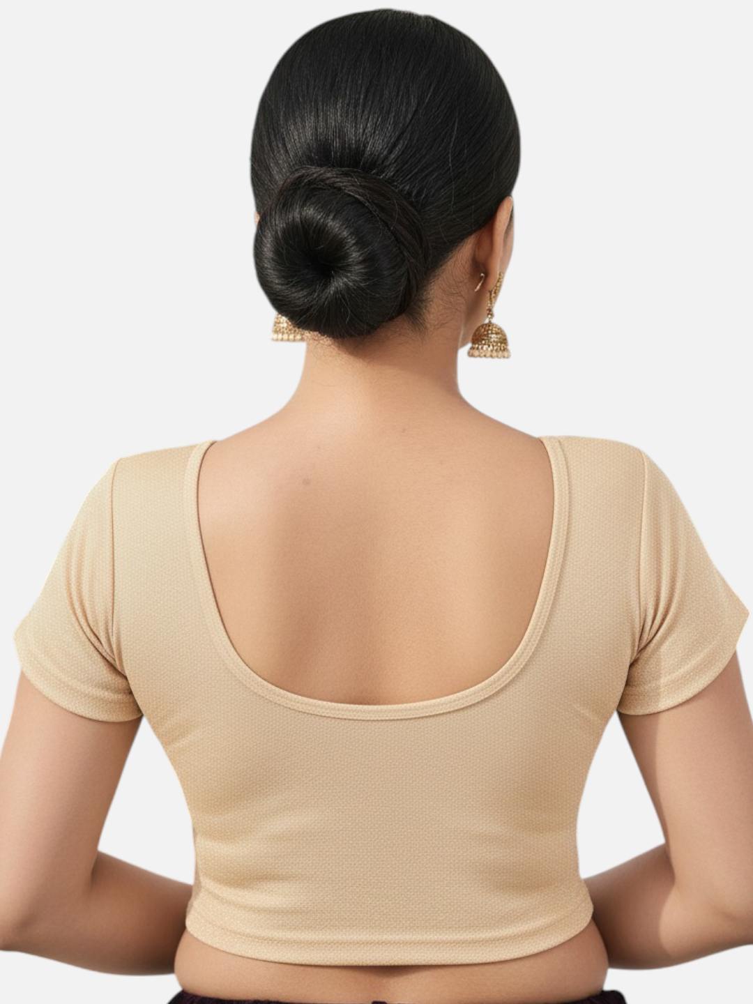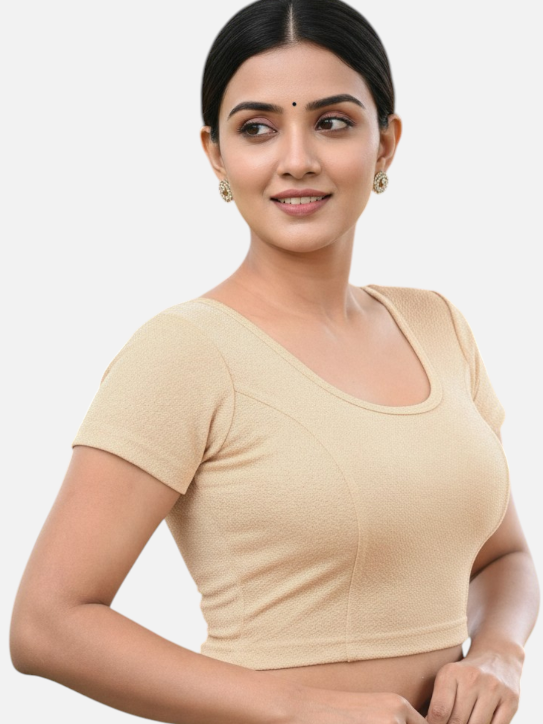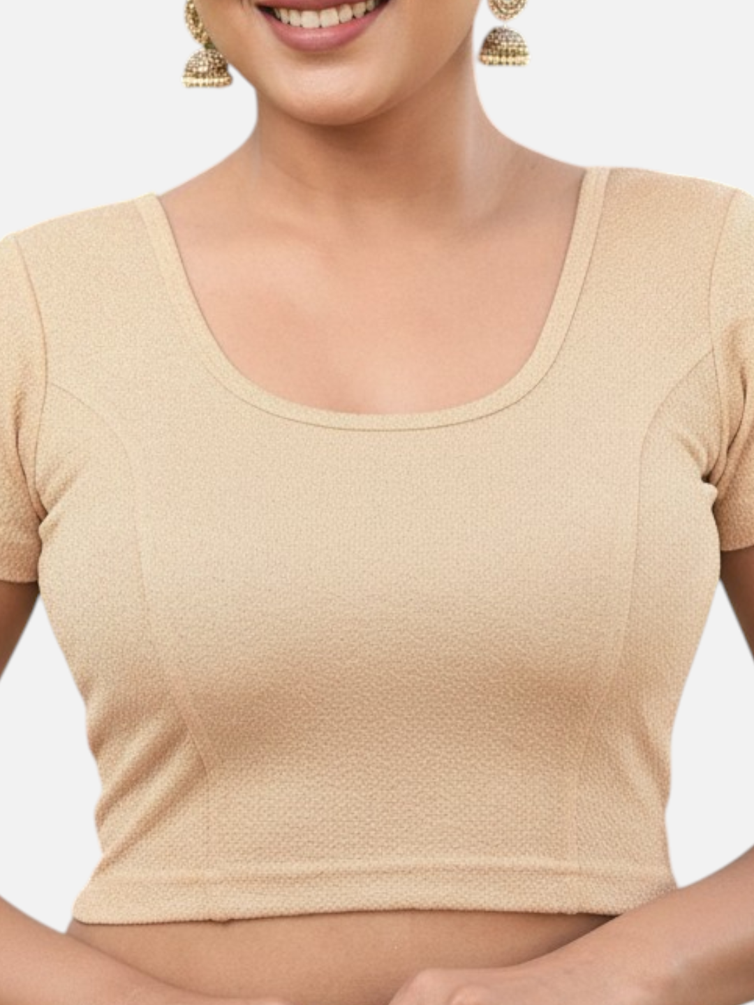 Gold Lycra Round Neck Short Sleeves Readymade Blouse