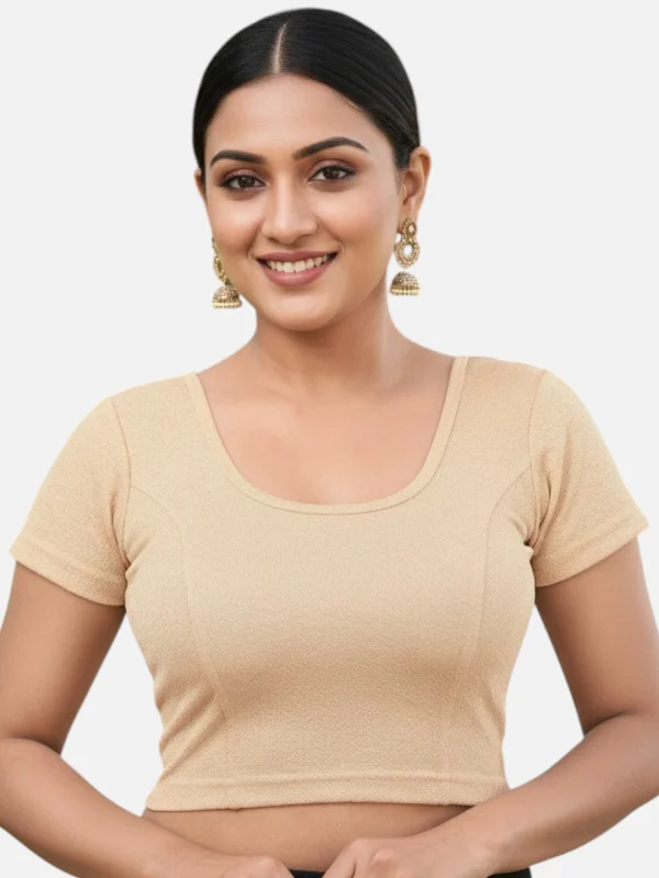 Gold Lycra Round Neck Short Sleeves Readymade Blouse