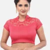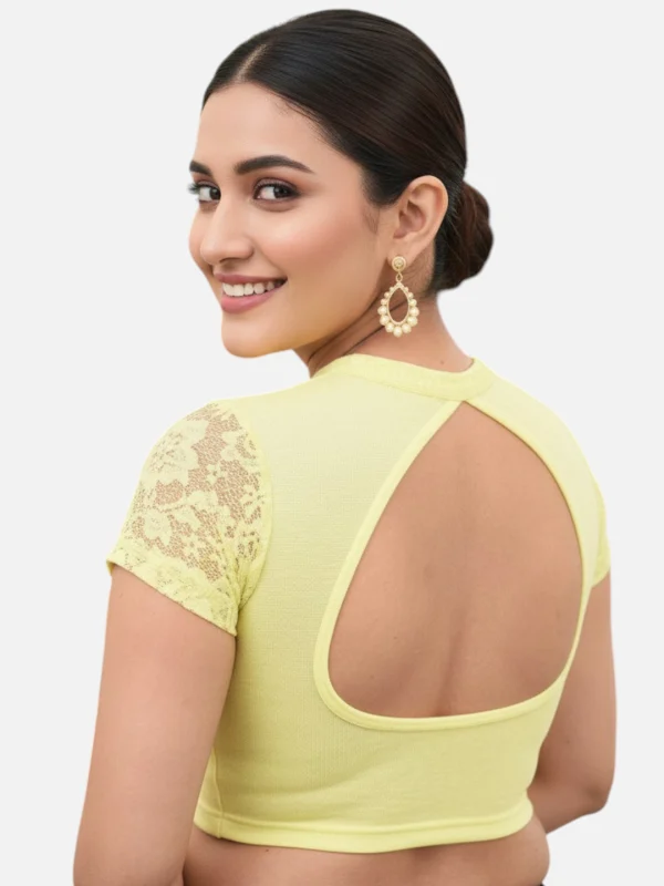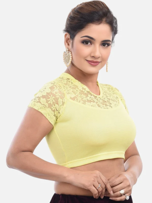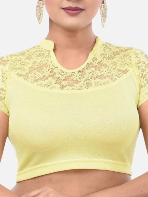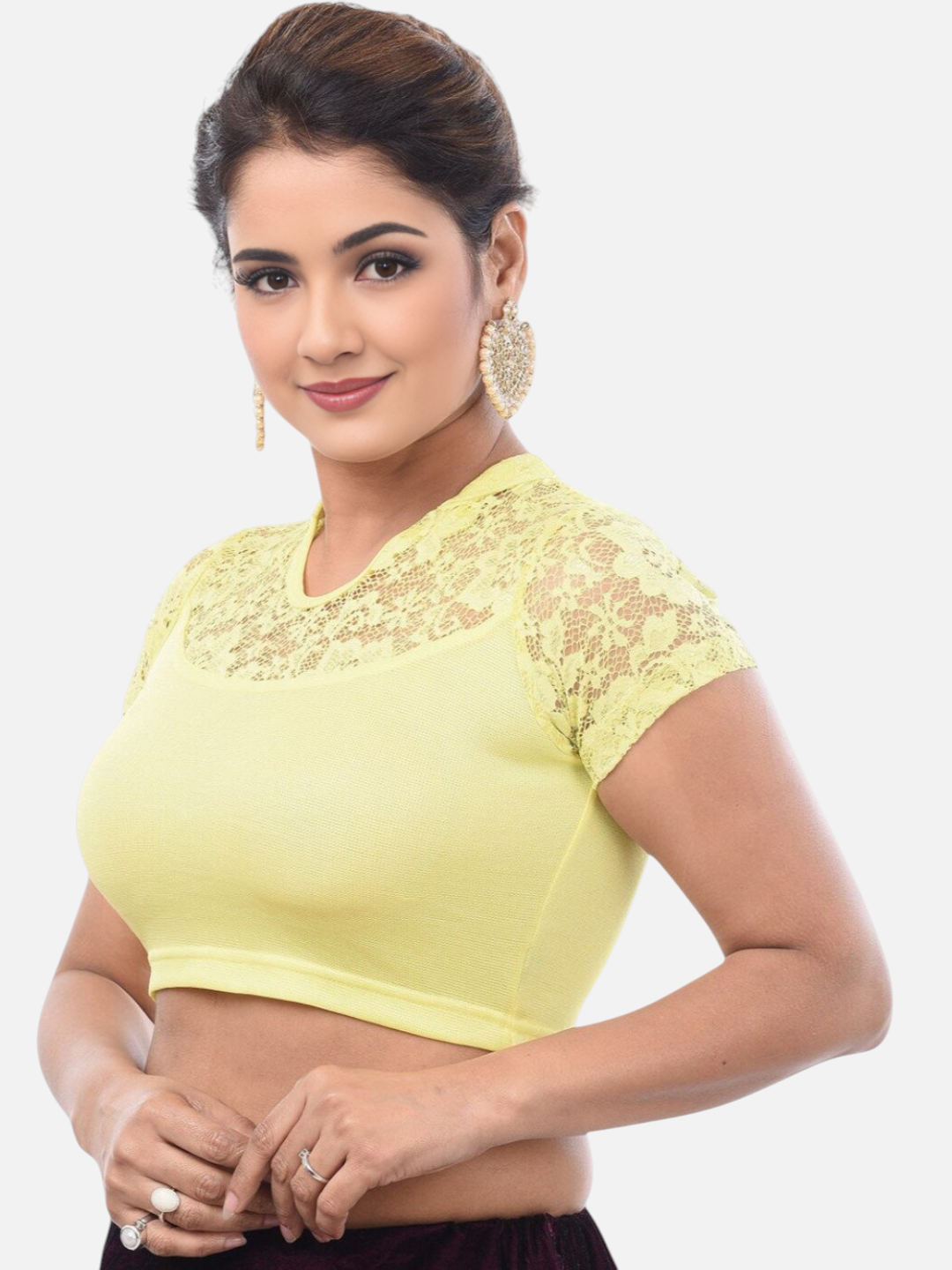 Lemon Yellow Lace-Yoke Stretchable Elastane Readymade Saree Blouse with Back Keyhole