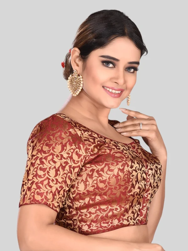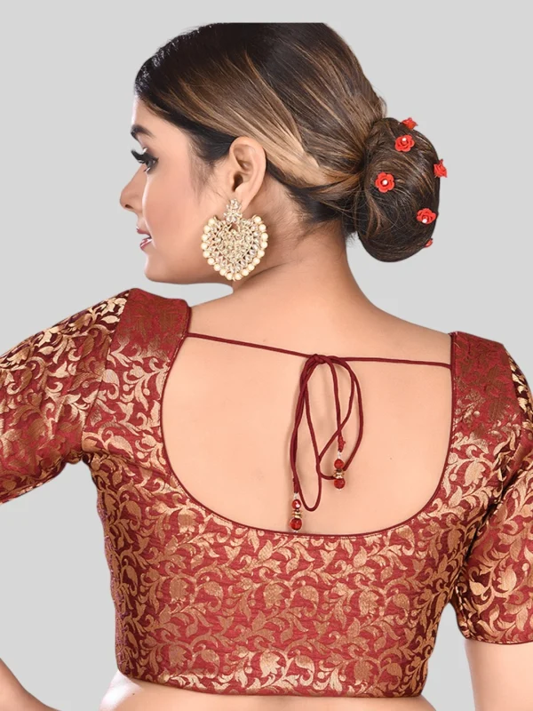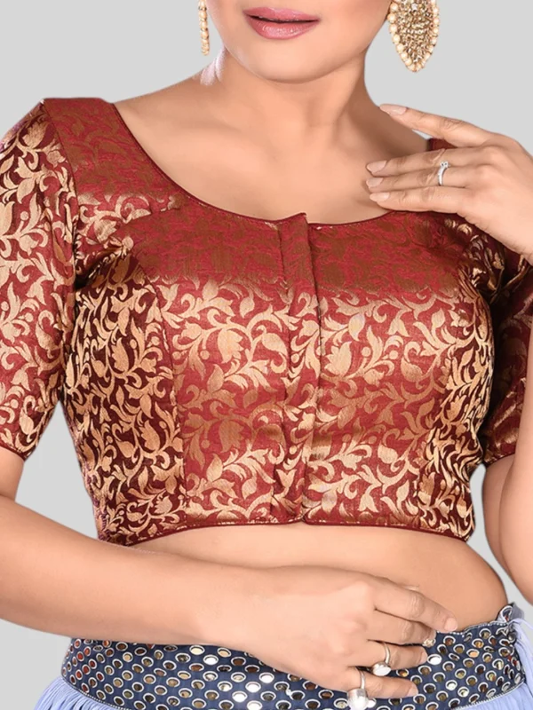 Maroon Brocade Round Neck Half Sleeves Readymade Blouse