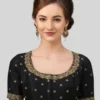 Navy Bule Silk Round Neck Half Sleeves Readymade Blouse