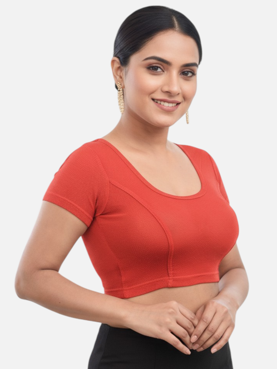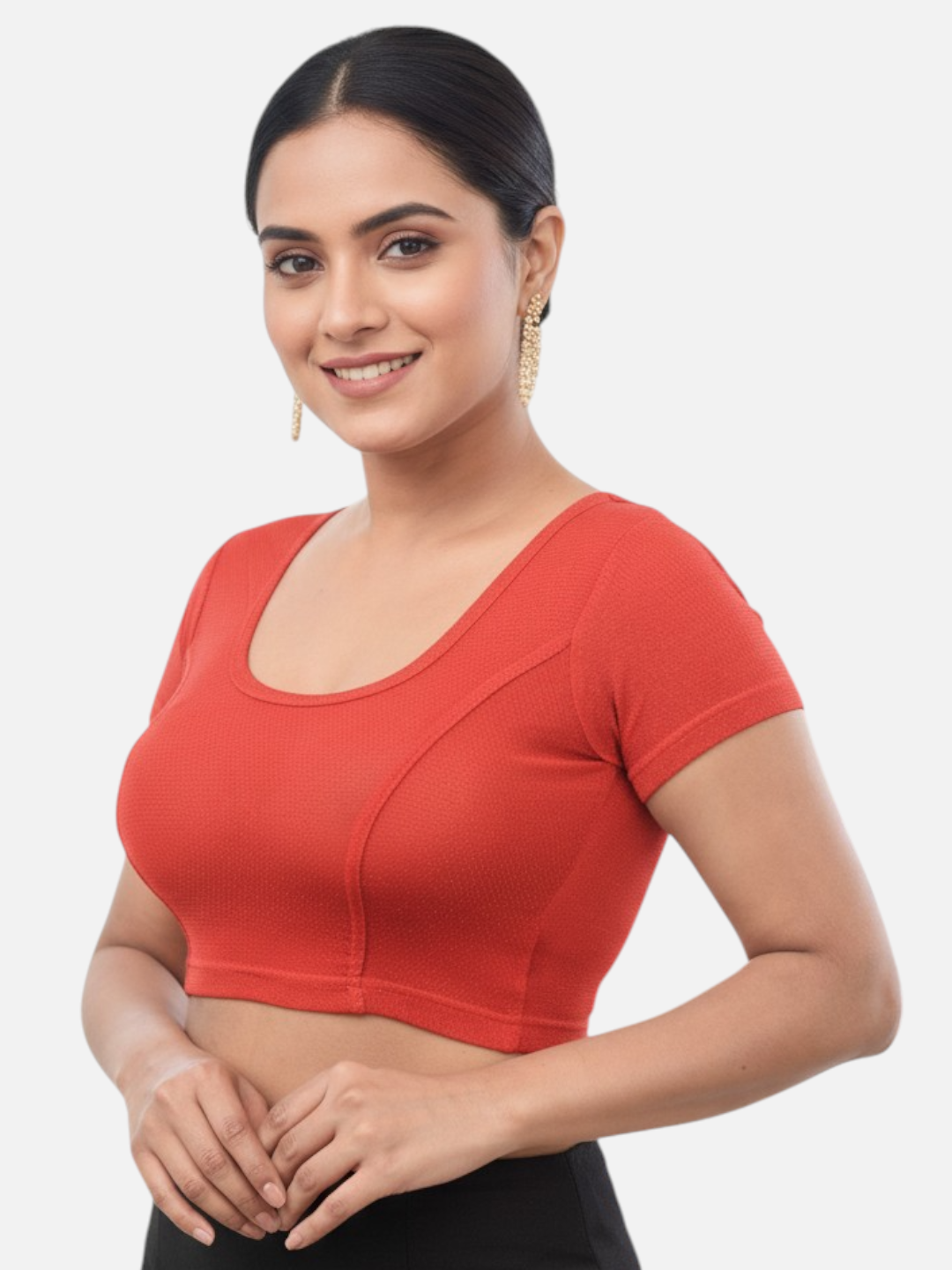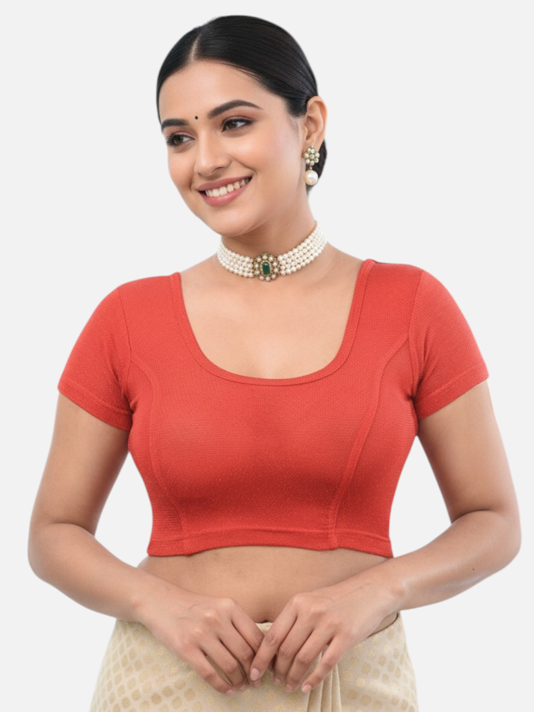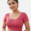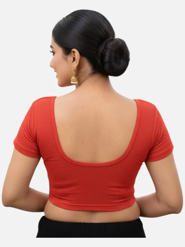 Red Lycra Round Neck Short Sleeves Readymade Blouse