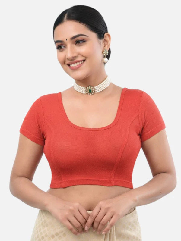 Red Lycra Round Neck Short Sleeves Readymade Blouse