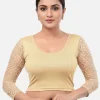 Red Silk Round Neck Short Sleeves Readymade Blouse