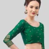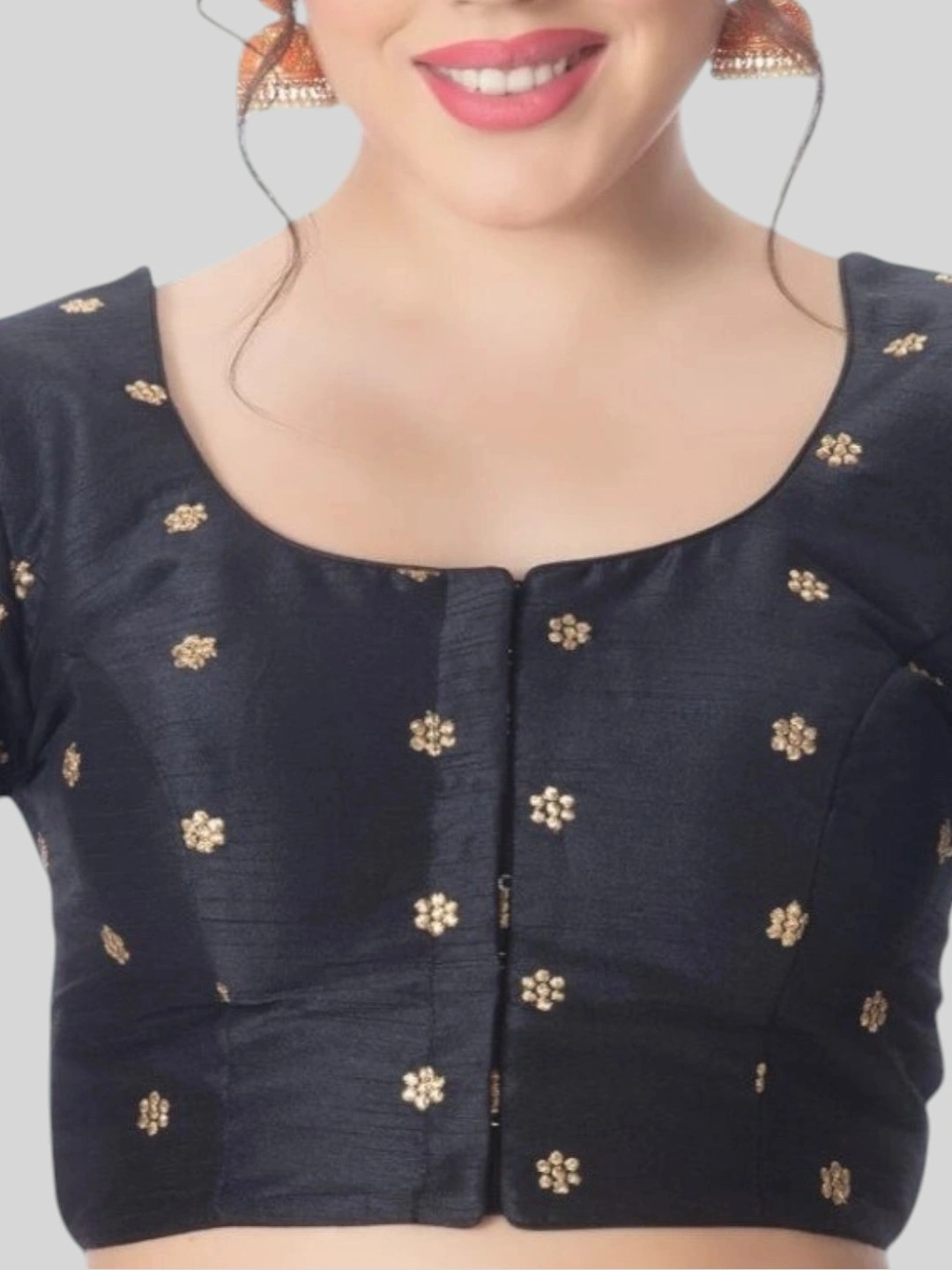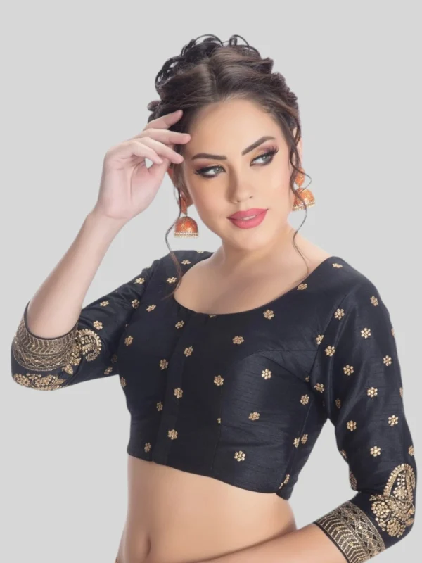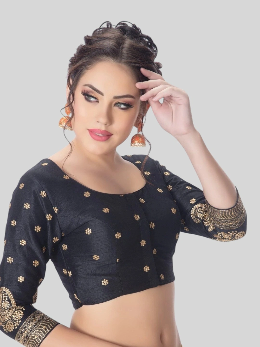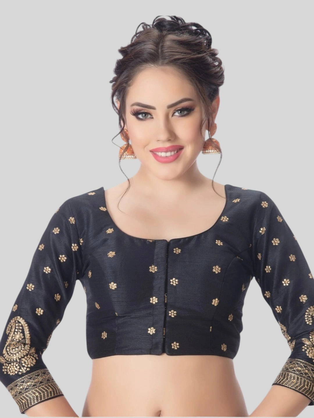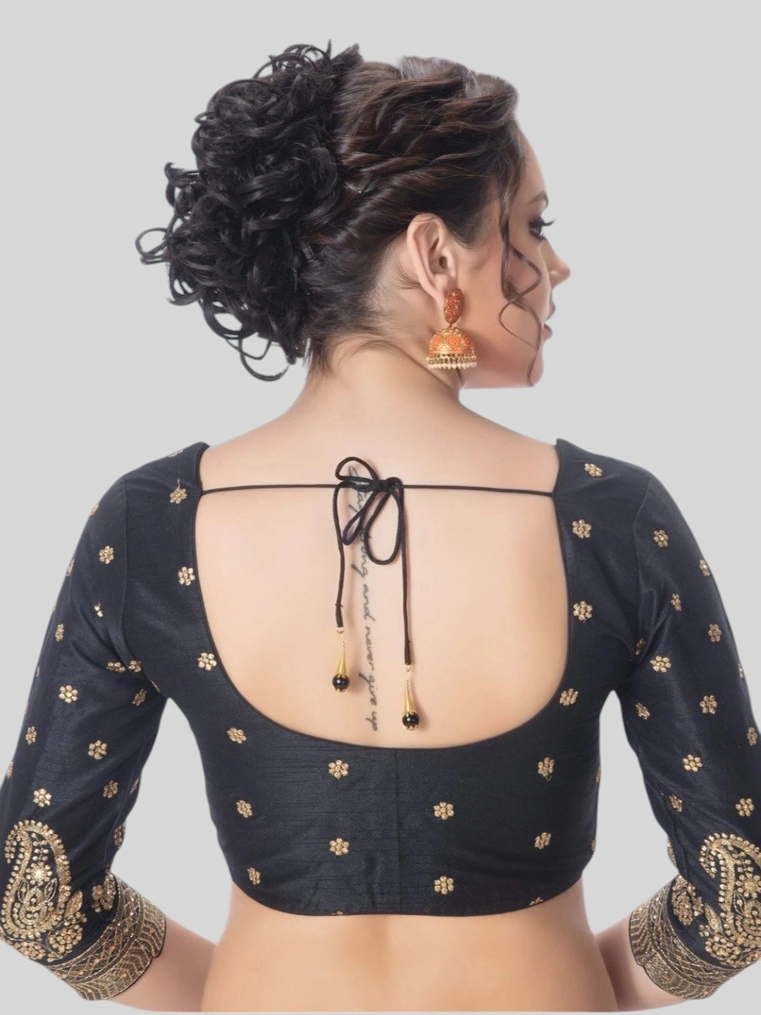 Black Brocade Round Neck 3/4 Sleeves Readymade Blouse