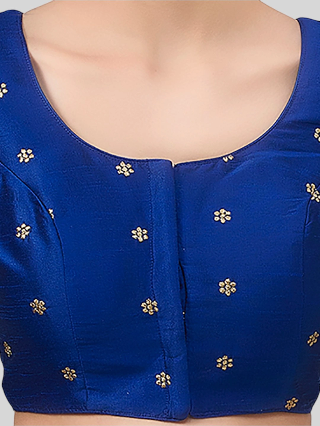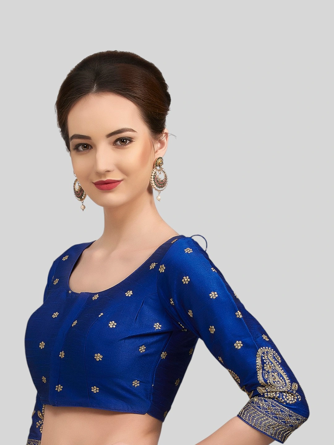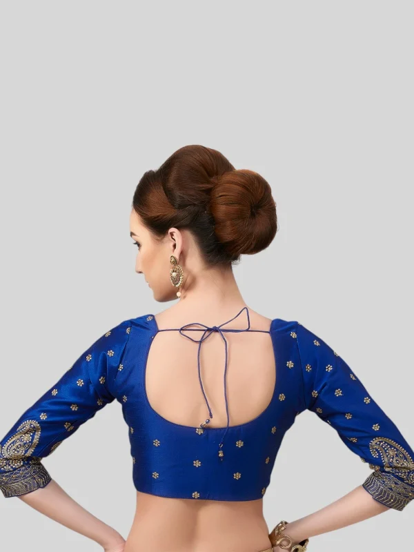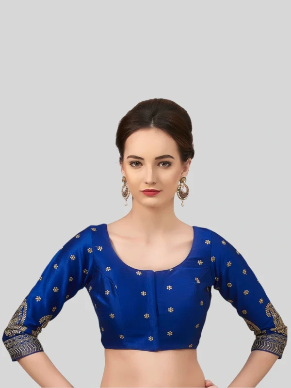 Royal Blue Brocade Round Neck 3/4 Sleeves Readymade Blouse