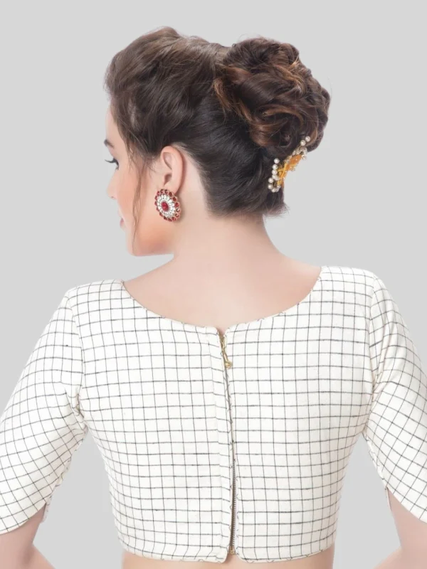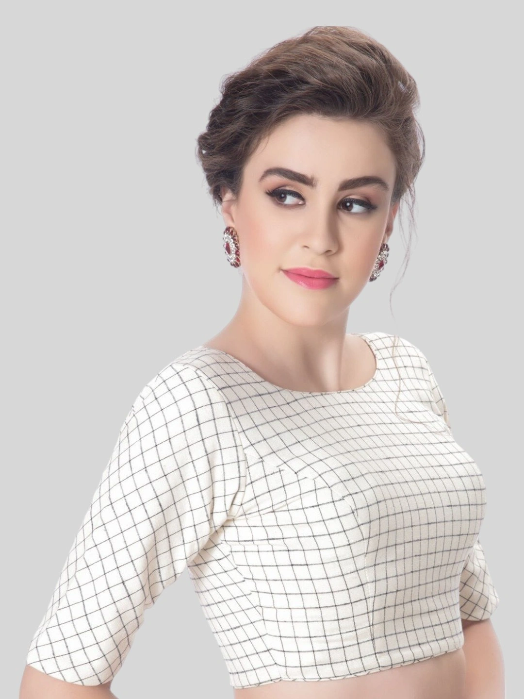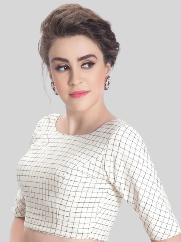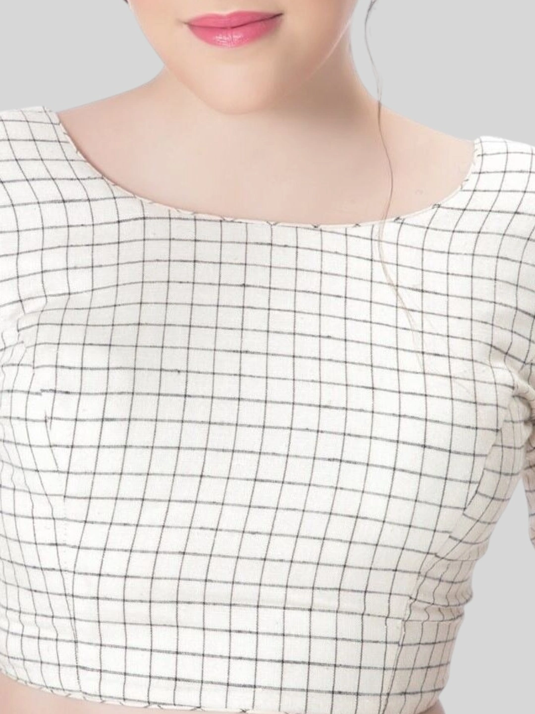 White Cotton Round Neck Half Sleeves Readymade Blouse