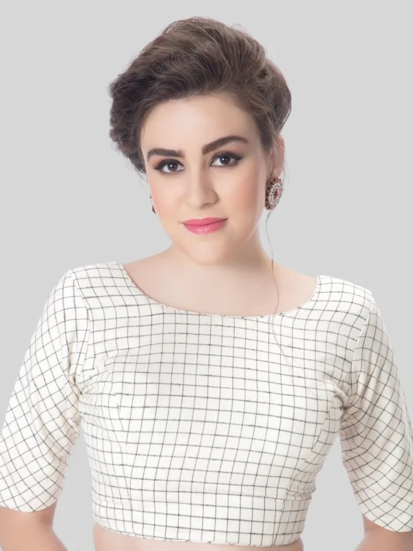 White Cotton Round Neck Half Sleeves Readymade Blouse