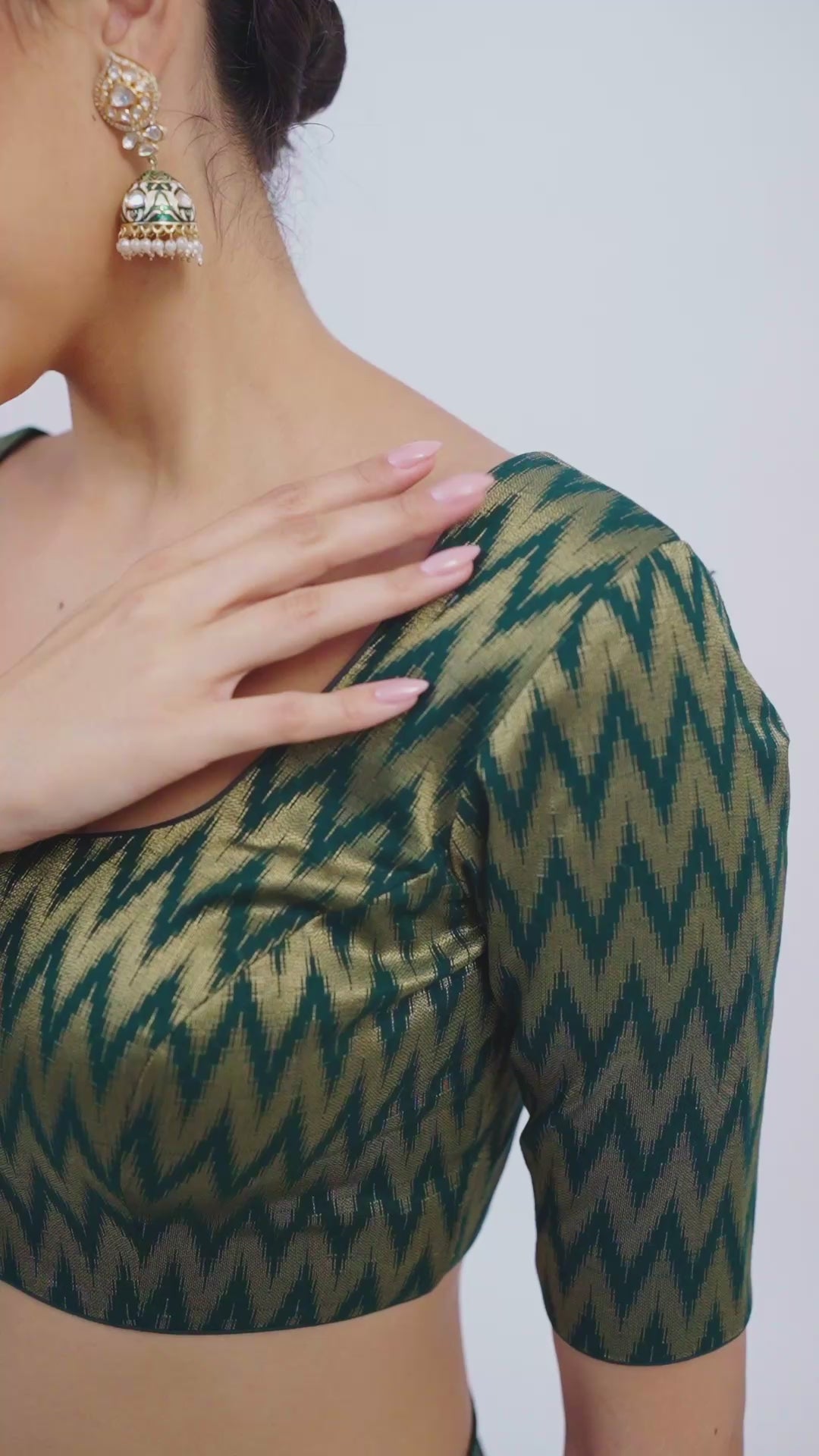 Bottle Green & Gold Zigzag Pattern Brocade Readymade Saree Blouse