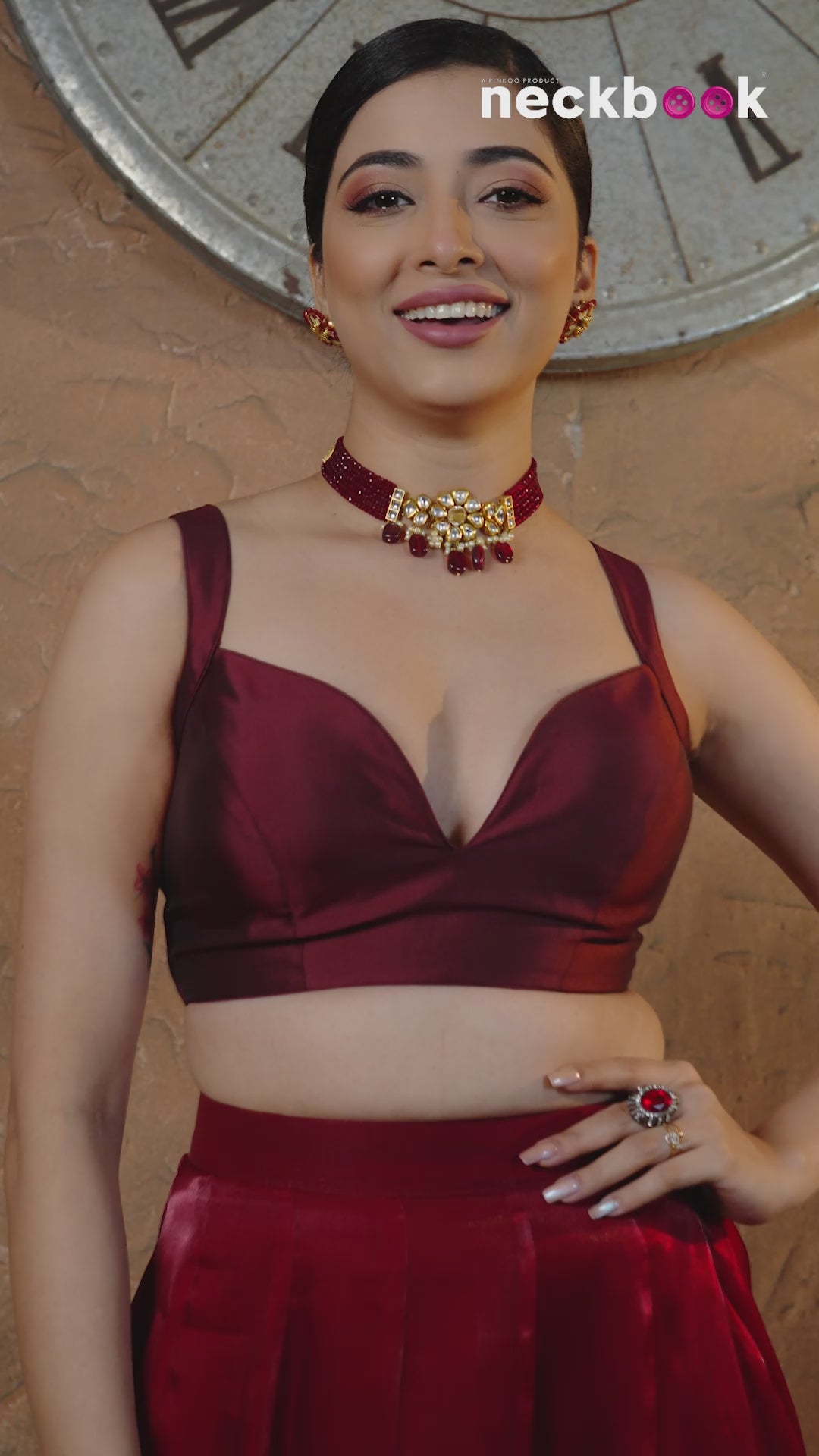 Product Description\n\nDive into sophistication with our Maroon Deep Neck Taffeta Sleeveless Blouse. This alluring piece combines timeless elegance with contemporary style, featuring a deep neckline that exudes confidence and grace. The rich maroon hue adds a touch of luxury, while the sleeveless design offers a modern and versatile appeal. Crafted from luxurious taffeta fabric, this blouse ensures a lustrous finish and a comfortable fit. Whether paired with a flowing skirt for formal occasions or tailored trousers for a chic evening look, this sleeveless blouse is a statement of refined glamour that effortlessly elevates your wardrobe.\n\nStyle & Fit Tips\n\nContrasting Palazzo Pants: Create a bold look by pairing the maroon blouse with contrasting colored palazzo pants. Play with color blocking to make a stylish and eye-catching statement.\n\nMaxi Skirt Glam: Combine the blouse with a flowing maxi skirt for a bohemian or evening event look. Choose a skirt with a complementary color or pattern to create a harmonious ensemble. Add heeled sandals or wedges to elongate your silhouette.